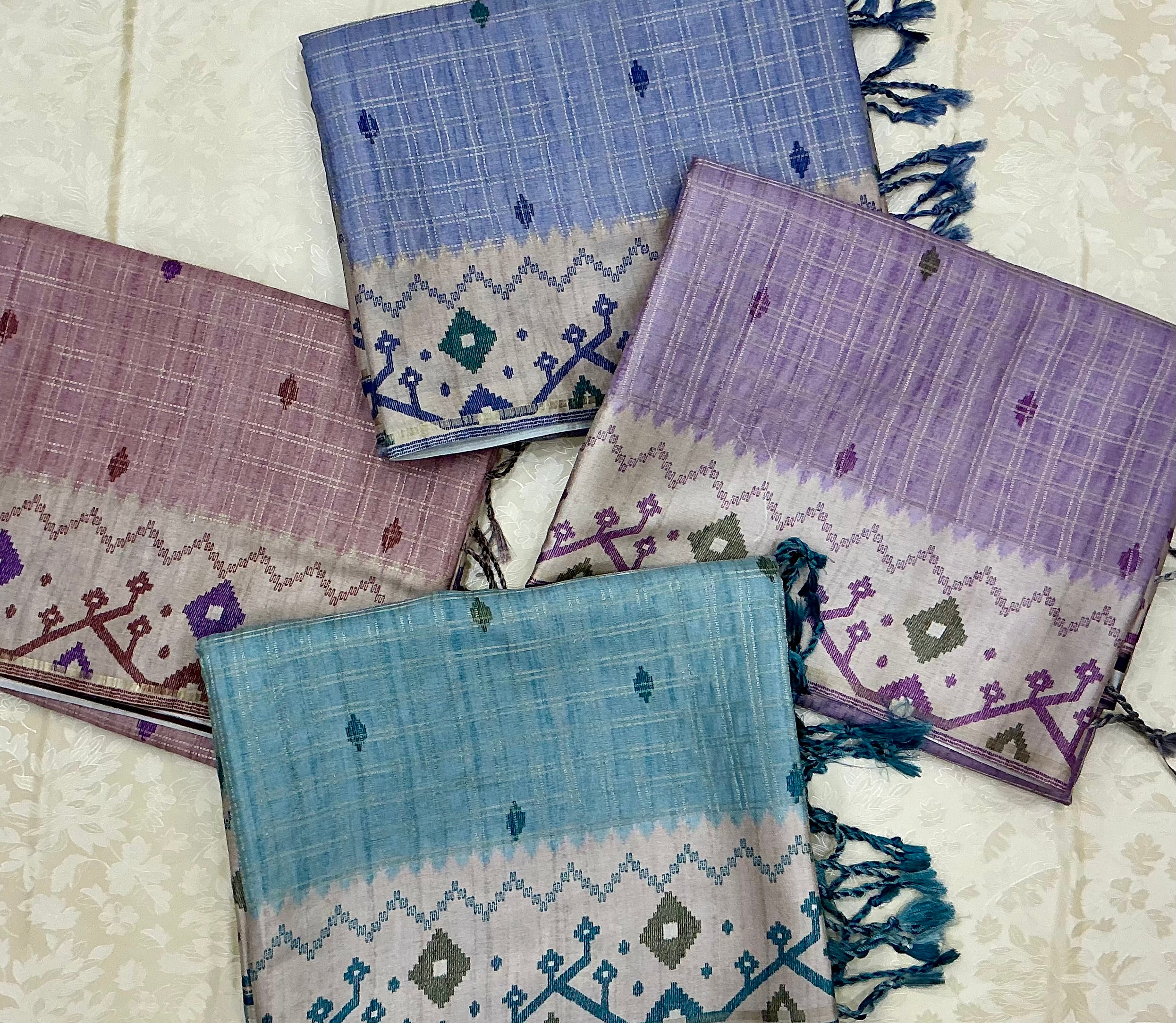 Crafted from Semi Tusser silk, this saree exudes a natural sheen and graceful drape, making it ideal for both festive gatherings and elegant daywear. The soft texture, refined palette, and handwoven detailing make it a statement of understated luxury.