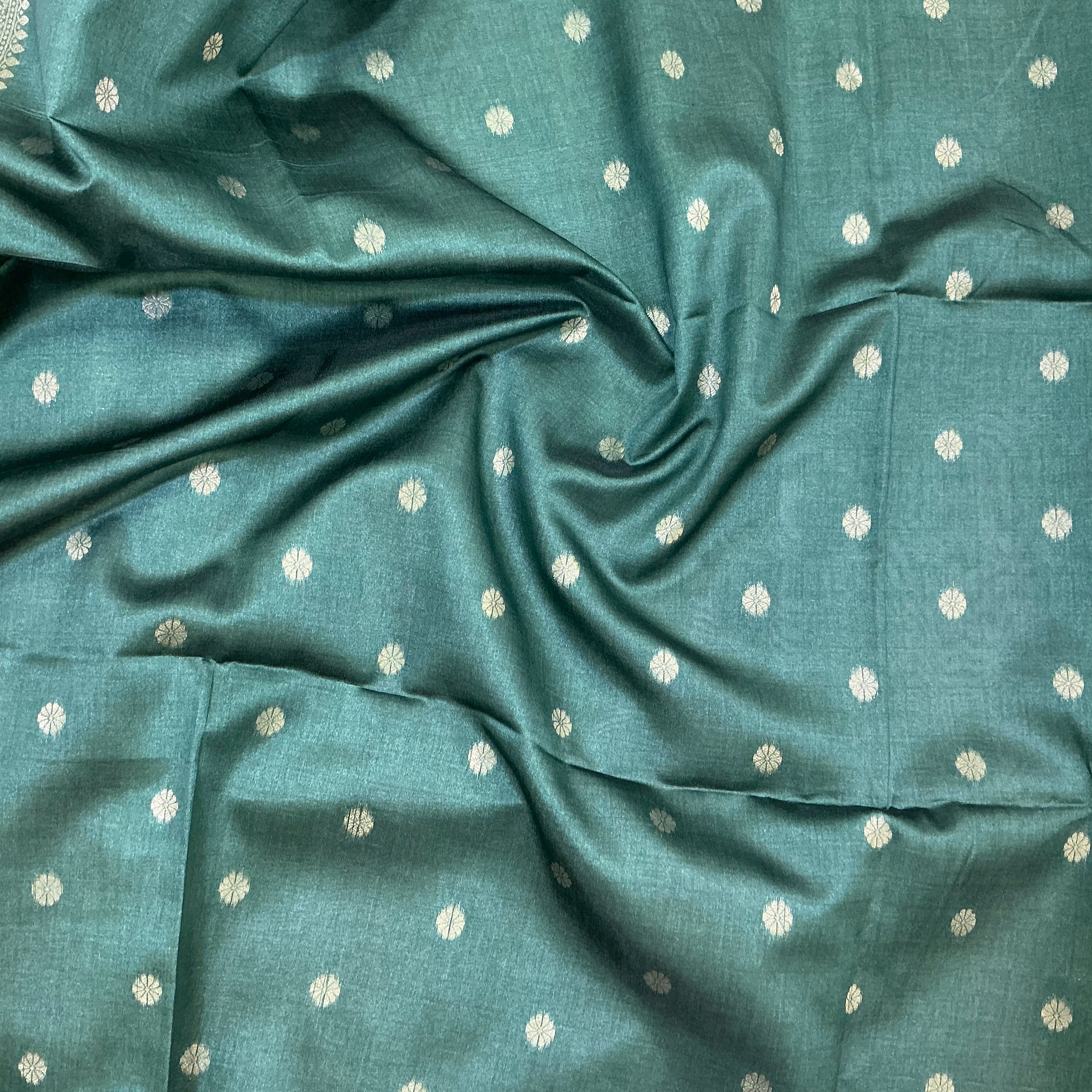 Ideal for festive occasions, traditional functions, and elegant gatherings, this saree offers a perfect fusion of classic craftsmanship and contemporary color aesthetics. Pair it with a bottle green or gold blouse and traditional jewelry for a polished, graceful ensemble.