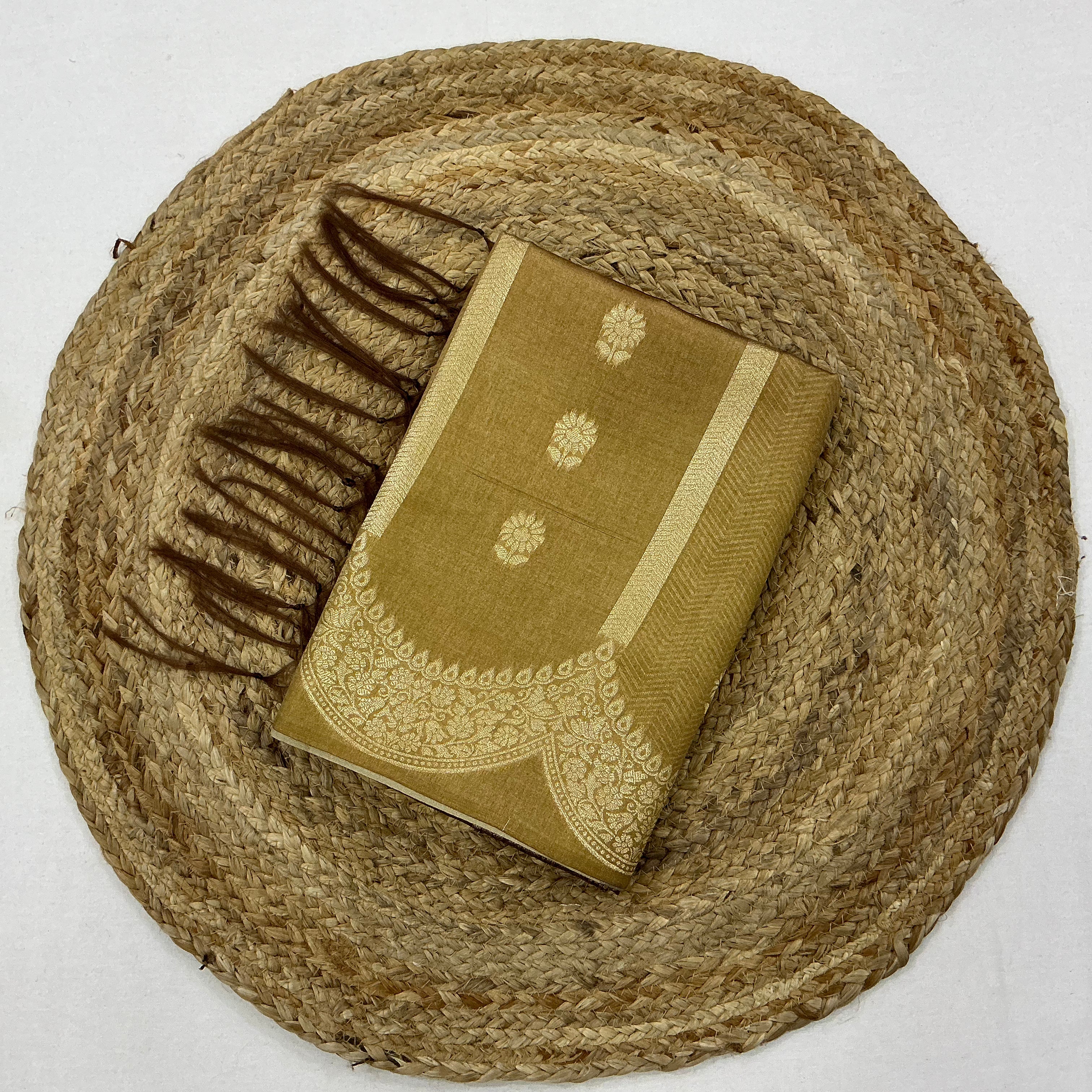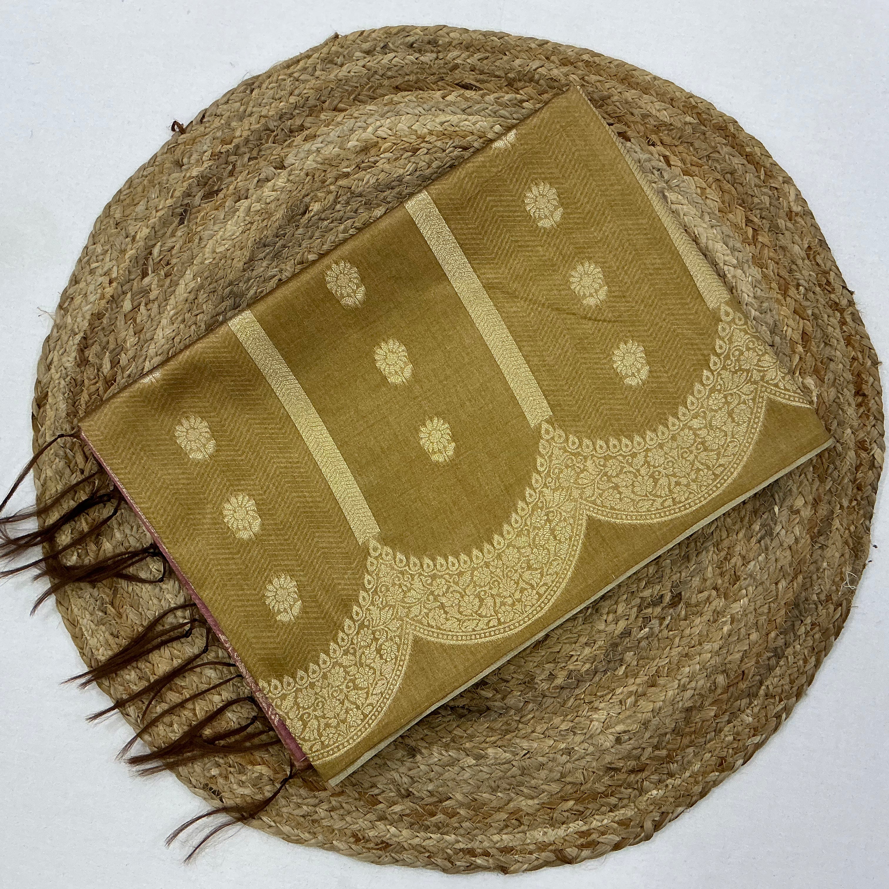 Perfect for festive occasions, weddings, and traditional celebrations, this saree blends classic elegance with rich earthy hues. Pair it with a brown or gold blouse and traditional jewelry for a refined, graceful look.
